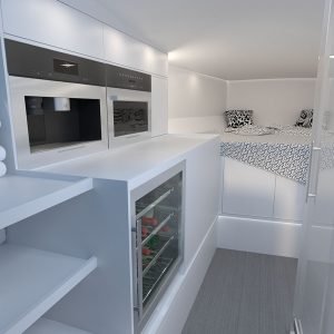 Arrow460-Cabrio’nun iç mekanı, bir motoryatın ötesinde bir deneyim sunar. Kabin, sadece geceyi geçirmek için değil, aynı zamanda zarif bir giyinme odası olarak tasarlanarak, sahiplerine olağanüstü bir yaşam tarzı deneyimi vaat eder. Lüks detaylar ve özenle seçilmiş malzemeler, iç mekanın estetiğini tamamlar.