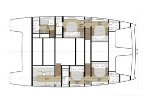 - Açık hava yaşamına odaklı flybridge: jakuzi, bar, barbekü ve güneşlenme alanı