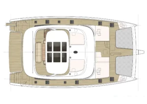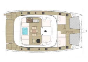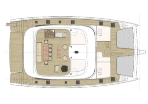 - Açık hava yaşamına odaklı flybridge: jakuzi, bar, barbekü ve güneşlenme alanı